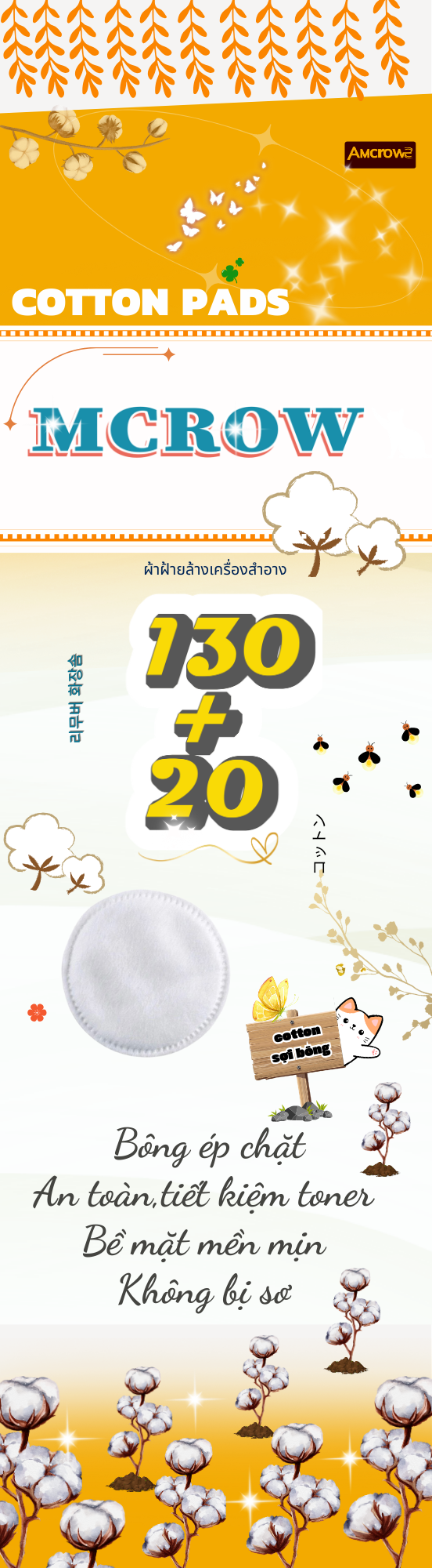 BÔNG TẨY TRANG TRÒN MCROW 150 miếng(Ong vàng)